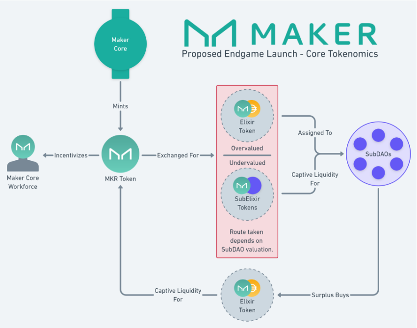 메이커다오는 스테이블코인 DAI의 가격을 안정시키고 청산 위험을 줄이기 위해 ‘엔드게임 토크노믹스’라는 새로운 기능을 도입했다. 이 새로운 시스템은 DAO를 메타다오(MetaDAO)라는 더 작은 단위로 조각내는 방식으로 작동한다. 각각의 메타다오는 특정한 목표를 가진 고유한 토큰을 갖게 되며, 마이너스 금리를 제공하는 동시에 DAI가 근거하는 중앙화된 자산에 25%의 제한을 도입한다.