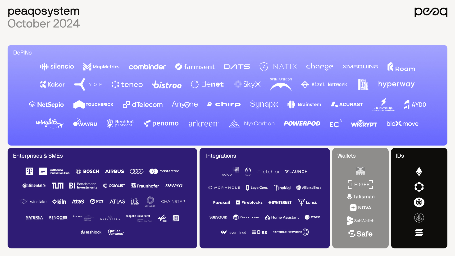 DePins를 위한 레이어-1 블록체인 생태계인 Peaq는 최근 발표했습니다 프로토콜과 새로운 PEAQ 토큰의 광범위한 출시를. 이 회사는 이미 수십 개의 프로젝트를 “peaqosystem”에 통합했으며 현재 39개의 별도 DePins를 지원하고 있습니다. 그러나 11월 12일에 이루어질 이번 광범위한 출시는 모든 프로젝트에 대해 새로운 기능과 애플리케이션을 가능하게 할 것입니다.