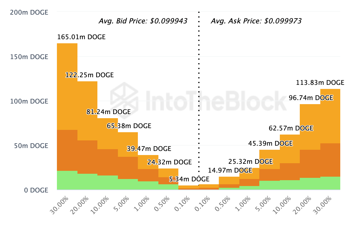 현재 작성 시점에서, 거래소 온체인 시장 깊이 데이터는 시장 참여자들이 가격이 0.0099달러로 떨어지면 5억 도지코인을 구매할 준비가 되어 있음을 보여줍니다. 참고로, 온체인 시장 깊이는 상위 20개 거래소의 주문장을 분석한 것입니다.