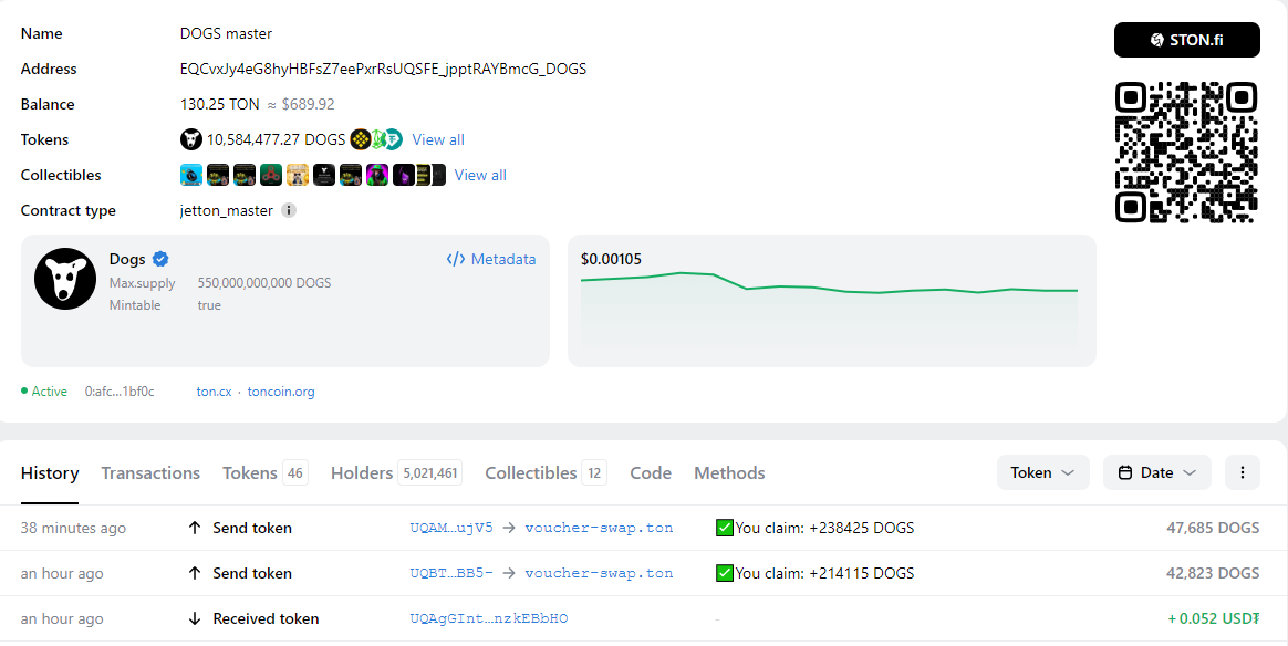Tonveiwer에서 제공하는 데이터에 따르면 TON 블록체인에서 DOGS를 보유한 지갑은 이미 500만 개를 넘었습니다. 이 인상적인 숫자는 출시 후 불과 2주 만에 달성되었습니다. 이를 통해 볼 때, 테더의 USDT(TRON 블록체인)와 이더리움(ETH)만이 DOGS보다 더 많은 보유자를 가지고 있습니다.