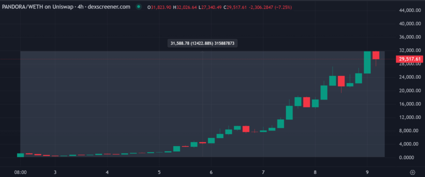 판도라의 판도라 토큰은 이달 초 출시 이후 $29,517.61까지 상승했습니다.