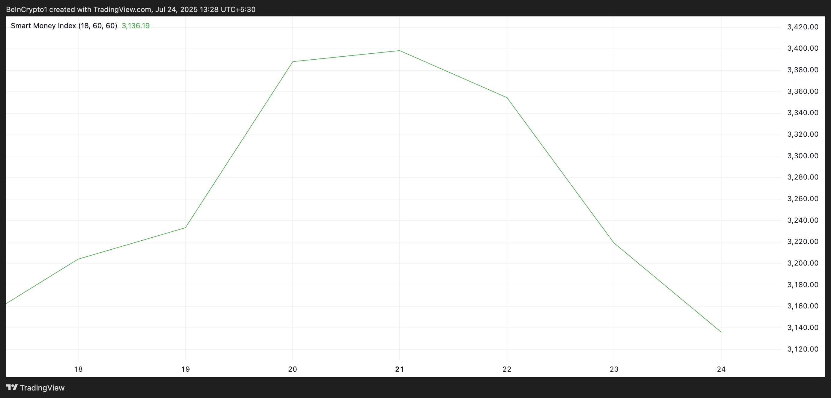 Sponsored자산의 SMI가 이렇게 하락할 때, 스마트 머니는 포지션을 줄이고 있으며, ETH의 경우, 이는 최근 랠리에서 이익을 잠그려는 욕구에 의해 주도되는 것으로 보입니다.