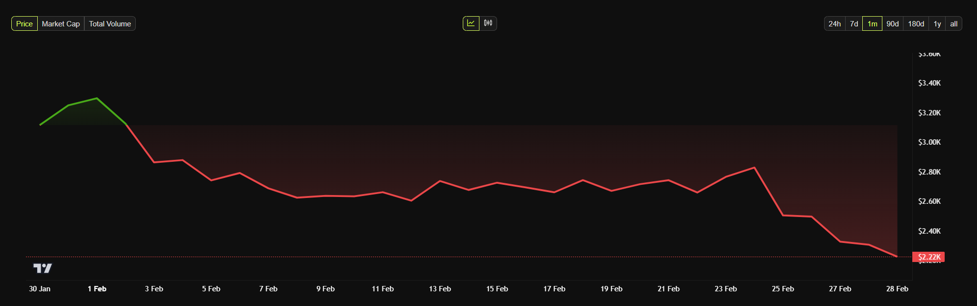 EF가 리더십 위기에 휘말려 있는 동안, 이더리움의 가격은 심각한 상태에 있었습니다. 예를 들어, 주요 논란은 재단이 사업 비용을 처리하는 방식과 관련이 있었습니다.