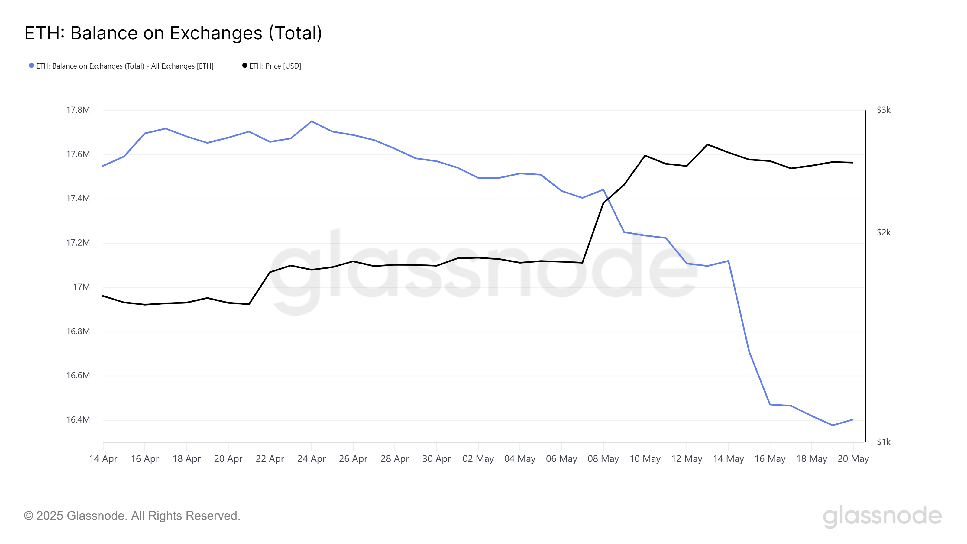 이더리움의 거래소 보유량은 지난달(4월 21일부터 5월 21일까지) 134만 ETH 감소했습니다. 이는 시장 상황의 큰 변화를 나타냅니다. 이 공급 감소는 34억 2천만 달러 상당이며, 이는 투자자들이 이더리움의 장기 성장에 대한 신뢰를 높인 Pectra 업그레이드 덕분입니다.