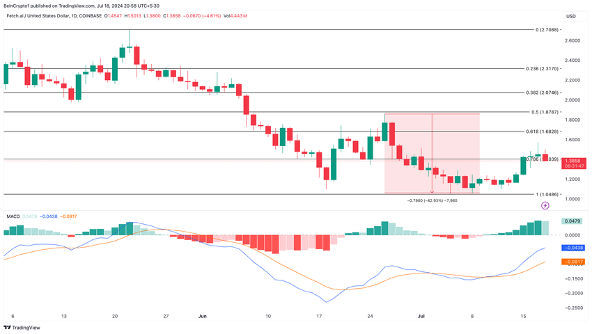 이 구간을 넘으면 1.88달러를 다시 테스트할 수 있습니다. 그러나 매도 압력이 작용하면 이 예측은 무력화될 수 있습니다. 이 경우 FET의 가격은 1.04달러까지 하락할 수 있습니다.