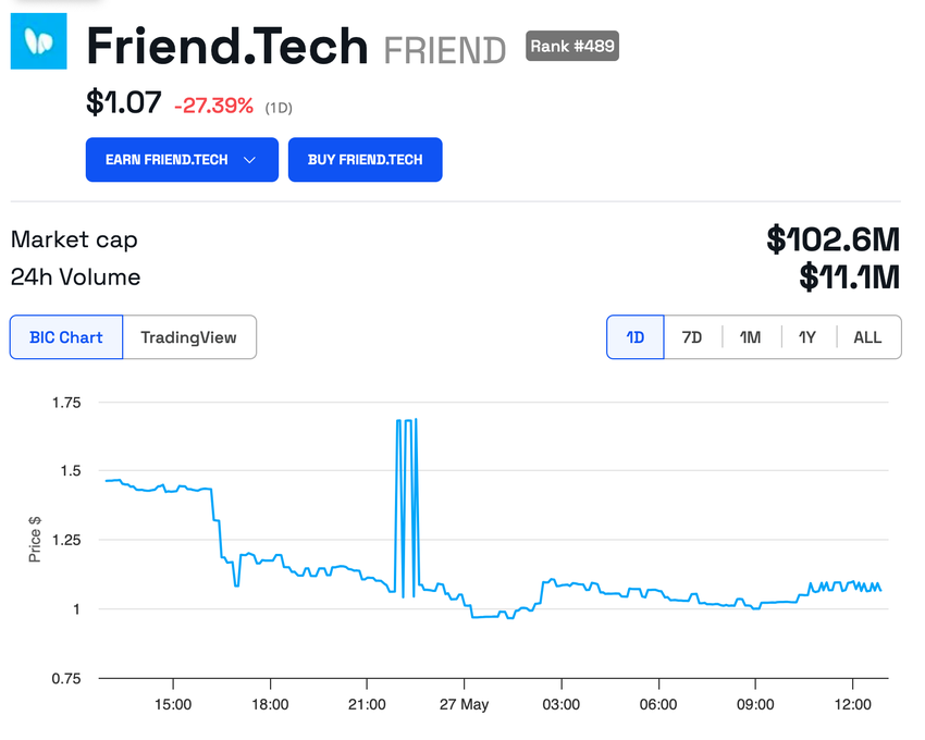 웹3.0 소셜 네트워크인 Friend.tech의 네이티브 토큰의 가치가 오늘 급격히 하락했습니다.
