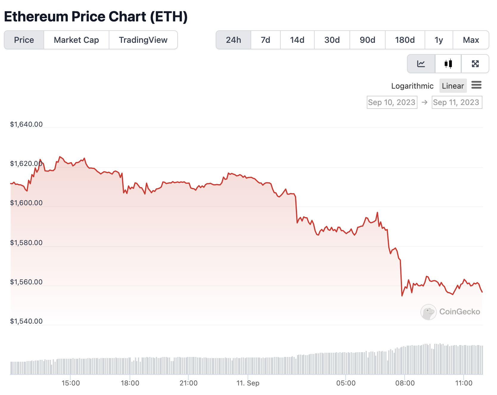 이더리움도 같은 기간 3.2% 하락하며 1550달러에서 매매가 이뤄지고 있다.