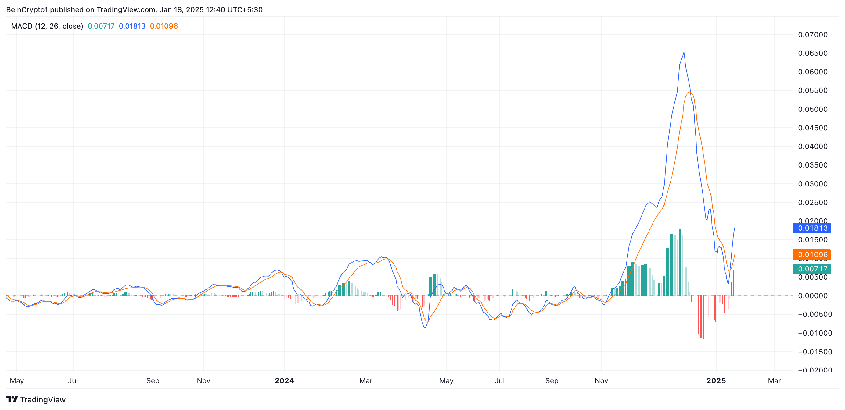 또한, HBAR의 이동평균 수렴·발산(MACD) 지표의 설정은 이 강세 전망을 확인합니다. 알트코인의 MACD 라인(파란색)은 현재 시그널 라인(주황색) 위에 위치하고 있습니다.