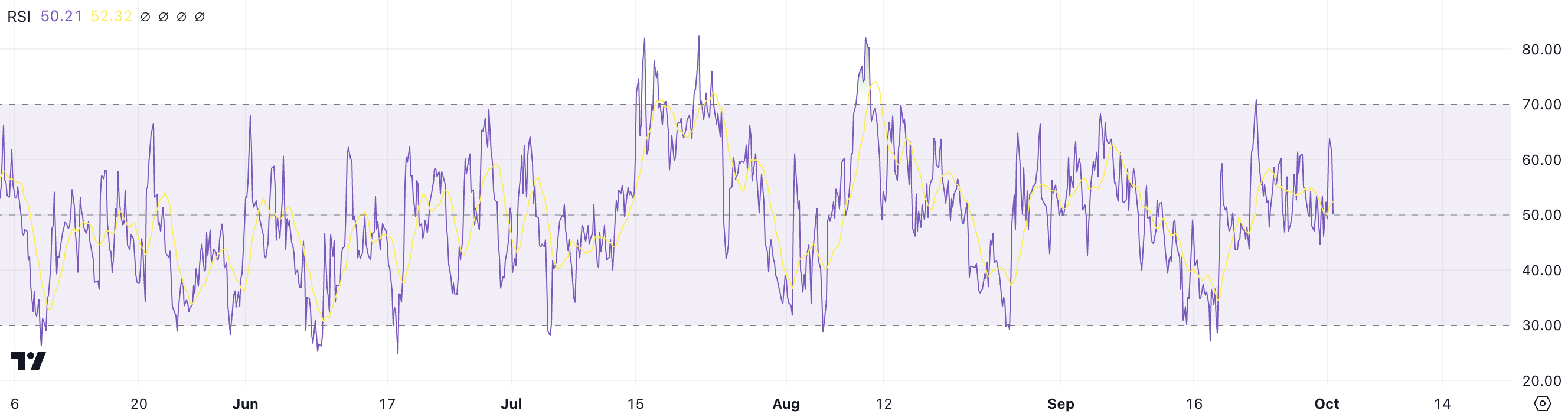 HNT의 RSI는 현재 50.21로, 시장 모멘텀에 있어 중립적인 입장을 반영합니다. 이는 가격이 과매수도 과매도도 아님을 나타냅니다. RSI(상대 강도 지수)는 최근의 이득과 손실을 비교하여 가격 움직임의 속도와 변화를 측정함으로써 트레이더들이 가격 움직임을 판단하는 데 도움을 주는 기술적 지표입니다.