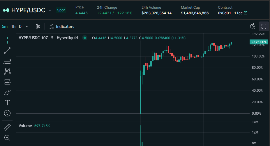 하이퍼리퀴드의 레이어 1 블록체인의 네이티브 토큰인 HYPE는 출시 몇 시간 만에 125% 급등하며 폭발적인 데뷔를 했습니다.