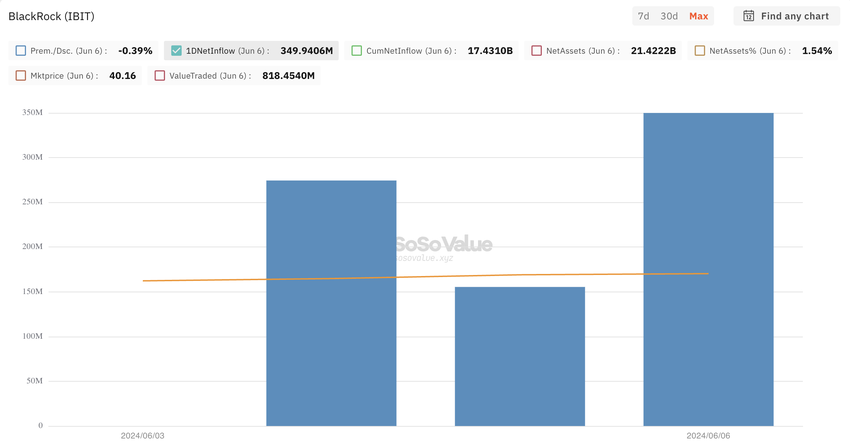 소소밸류의 데이터에 따르면 목요일에는 3억 5천만 달러가 추가로 유입되었습니다. 결과적으로 이번 주 IBIT의 총 유입액은 7억 8천만 달러에 육박했습니다.