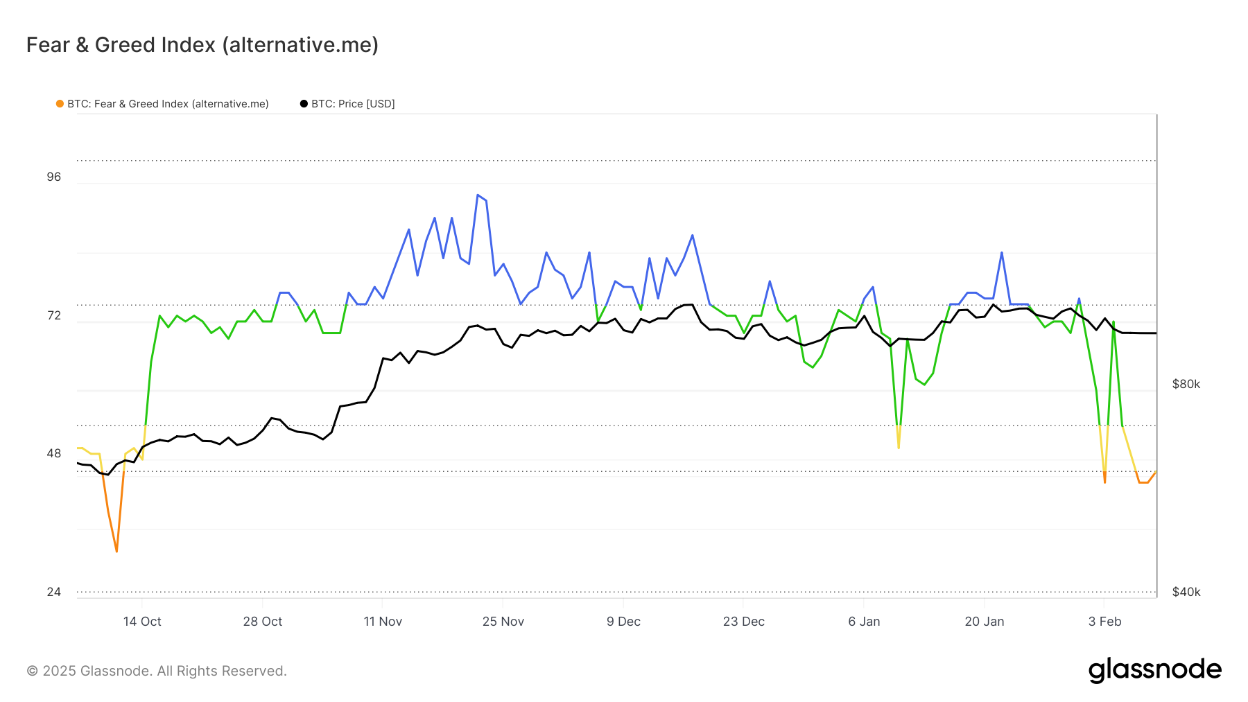 공포와 탐욕 지수는 현재 약세 심리를 나타내며, BTC 보유자들 사이에서 불확실성이 커지고 있음을 반영합니다. 이 지수는 2023년 10월 이후 두 번째로 공포 영역에 진입했습니다. 이는 많은 기존 투자자들이 시장에 적극적으로 참여하기를 꺼리며, 명확한 회복 신호를 기다리고 있음을 시사합니다.