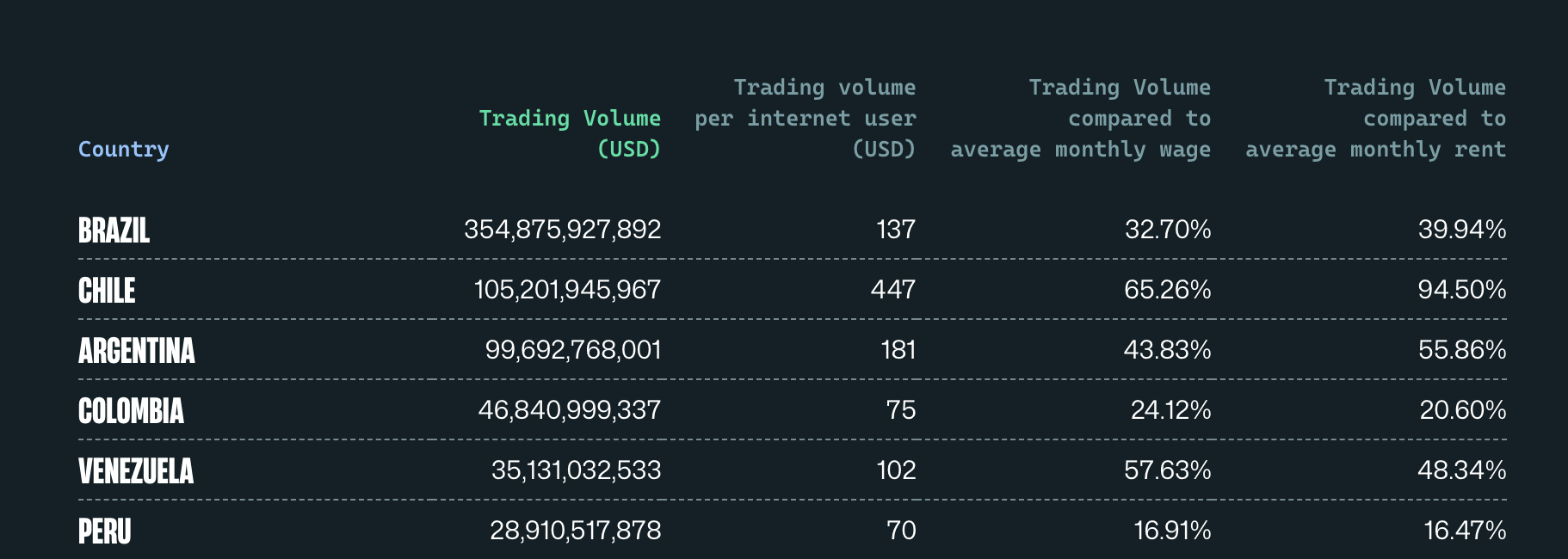브라질, 칠레, 아르헨티나가 중남미 암호화폐 거래를 주도하다