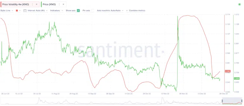 XNO 토큰이 달성한 최대 가격은 샤프 비율이 높은 기간에 이뤄졌다.