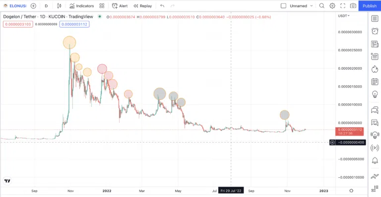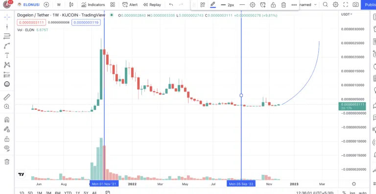 0.0000005795달러에 도달하면 ELON은 성공적으로 새로운 고점을 기록할 것이다. 정서가 맞아떨어진다면 2023년에 랠리가 시작될 수도 있다는 말이다.