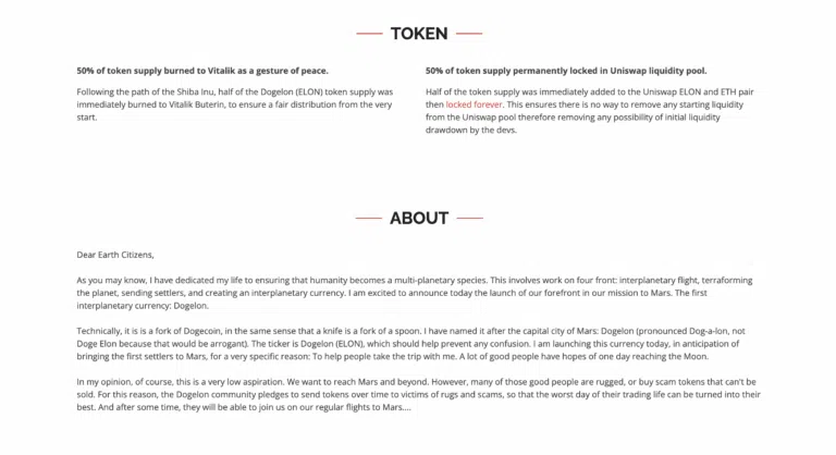 도지론 마르스는 풀 잔액 및 유동성을 유지하기 위해 ELON 토큰과 40 ETH를 유니스왑 유동성 풀로 옮겼으며 그 대가로 유동성 제공자 토큰을 받았다. 하지만 도지론 커뮤니티는 많은 돈을 벌려고 이 공간에 있지 않다는 것을 보여주기 위해 LP 토큰을 소각하기로 결정했다.