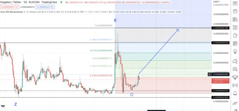 가장 최근의 도지론 마르스(Dogelon Mars) 가격 예측은 어떨까? 밈 토큰은 약세 시장에서 어떻게 버티고 있을까? 이 같은 질문에 답하기 위해 무작위 가격 예측과 달리 도지론 마르스 가격 예측은 각양각색의 요소를 고려해야 한다. 여기에는 주간/일별 차트 패턴, 시간에 따른 가격 변화, 추세선, 피보나치 수준, 신중한 데이터 외삽(data extrapolation)이 모두 포함된다.