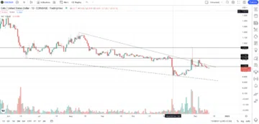 차트 패턴을 보면 CELO가 디센딩 또는 하강 쐐기(wedge) 내부에서 거래되고 있음을 알 수 있다. 이 패턴은 온체인 메트릭과 거래량 급증이 일치할 경우 CELO에 대해 강세로 전환될 수 있다. 또한 거래량에 주목하면 CELO 카운터에서 꾸준한 성장세 및 상용화를 볼 수 있게 된다.