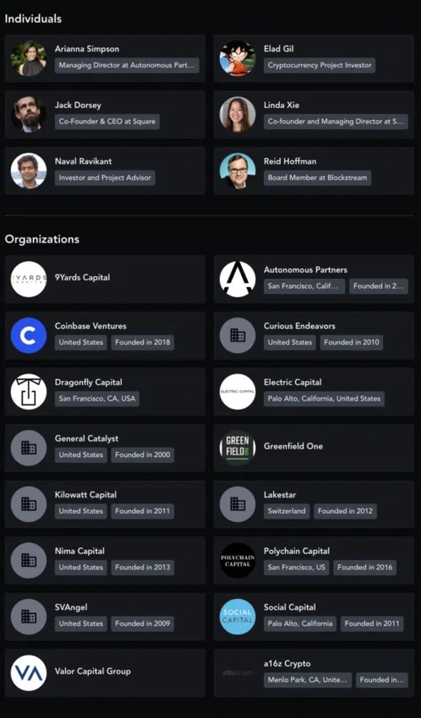 - 나발 라비칸트(Naval Ravikant)가 투자자와 프로젝트 어드바이저를 맡고 있다.