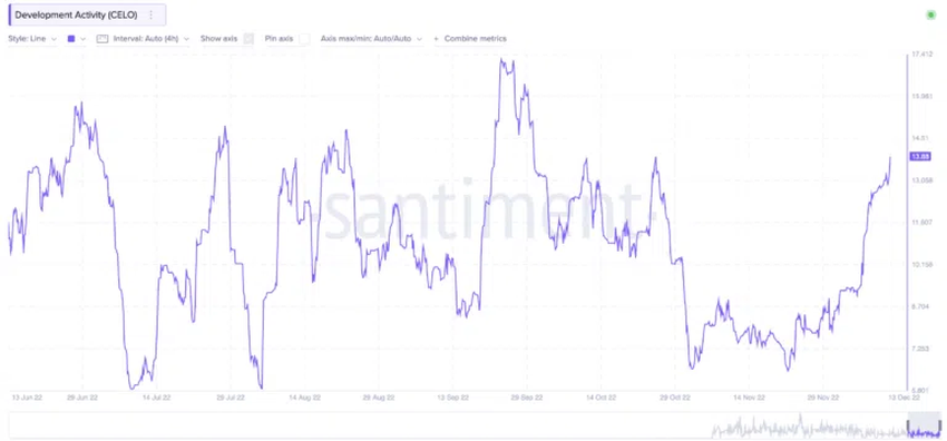 CELO 가격은 11월 초에 하락했지만 12월 이후 11월 이전 수준까지 오르기 시작했다. 이러한 가격 움직임은 같은 시기 셀로에서 네트워크 활동이 점진적으로 증가하는 것과 일치한다.