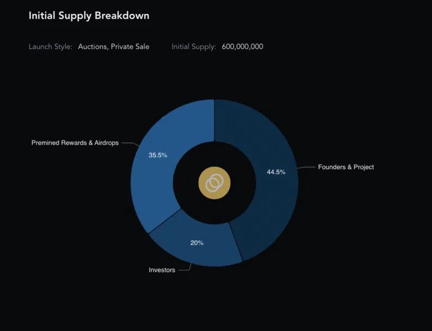 다음은 초기에 할당된 6억 토큰의 공급 내역이다.