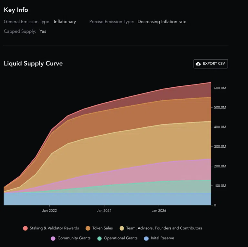 에프크(epoch) 보상으로 토큰 4억 개가 나가며 이 토큰들은 자체 베스팅 기간이 있다. 또한 에포크 출시는 점진적으로 감소되는 발행 비율을 감안해서 이뤄진다.
