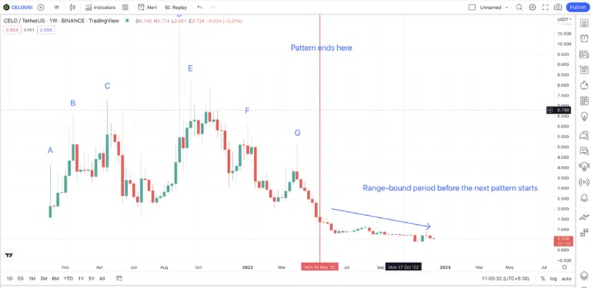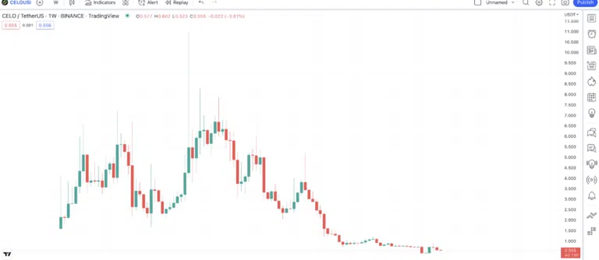 CELO의 주간 차트를 보면 다음과 같은 패턴이 나타난다.