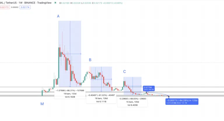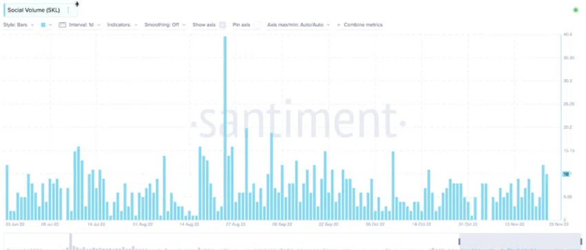 - SKL 토큰의 최저 가격은 2022년 12월 19일의 0.02051달러였다.