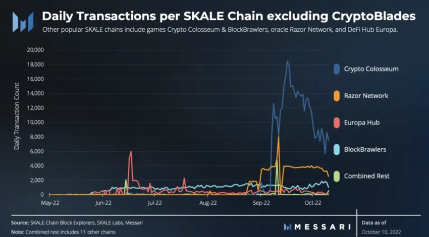 - 지난 10월 게임 디앱 사이드체인인 크립토블레이드(CryptoBlades)가 대부분의 스케일 네트워크 활동에 기여했다.
