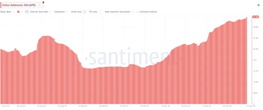 활성 주소 수치를 살펴보면 지난 7월 이후 APE를 보유한 지갑 수 증가세가 뚜렷하다. 이는 낙관주의를 반영하며 에이프 코인의 다음 랠리가 곧 시작할 수 있다는 것을 보여준다.