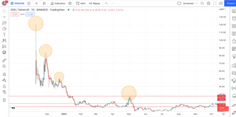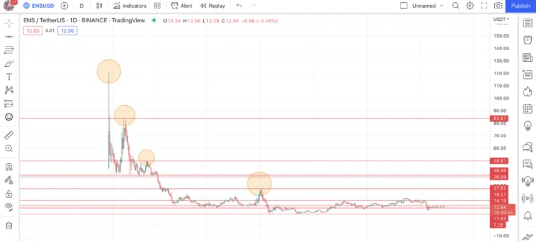 - ENS 토큰은 약세장만 겪었기 때문에 다음 강세장 동안 얼마나 높이 올라갈 수 있을지 예측하기 어렵다.