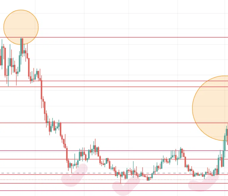 다음은 모든 참조 가격 포인트가 포함된 가격 차트이다.