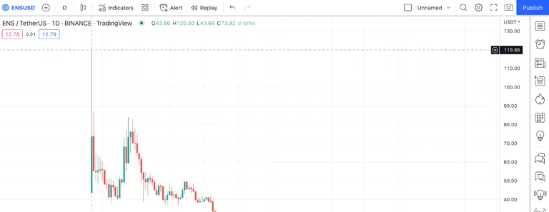 ENS 토큰은 지난해 11월 11일부터 제공되었으며 공개 가격은 거의 120달러였다. 이날 사상 최고가인 85.69달러에 거래를 마쳤다. 그 이후로 다시 고점에 도달하지 않았다.