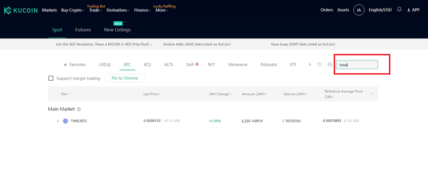 다음으로 원하는 코인을 검색한다. 거래할 수 있는 코인을 쿠코인이 나열해줄 것이다.