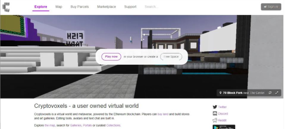 크립토복셀은 이더리움 블록체인을 기반으로 구축된 또 다른 세상이다. 예술가와 수집가들이 비주얼라이저로 특징지어지는 자신만의 갤러리를 만들 수 있게 해준다. 누구나 무료로 갤러리를 만들 수 있지만 실시간으로 시청자와 연결할 수 있는 기능은 없다. 만약 여러분이 자본을 가지고 있다면 땅을 살 수 있고 디자이너를 시켜서 독특한 갤러리를 만들도록 할 수 있다.