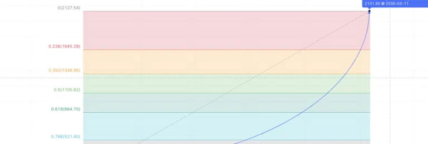 피보나치 수준에 따르면 2030년 컴파운드 가격 예측은 2127.54달러가 된다.
