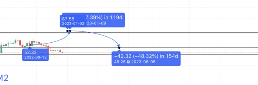 2023년의 저점은 45.01달러의 강한 지지선에서 나타날 수 있다.