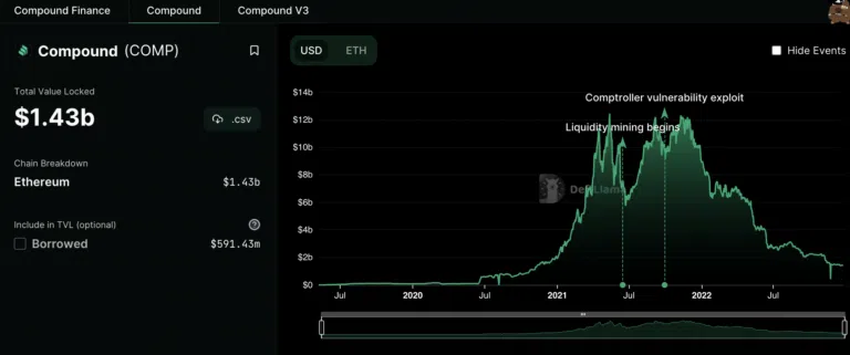 컴파운드는 사용자가 이자를 얻기 위해 특정 풀에 암호화폐를 예치할 수 있는 디파이 대출 프로토콜로서, 수동적인 수입(passive income)을 추구하는 사람들 사이에서 인기를 누려왔다. 토큰을 풀에 예치한 사용자는 그 대가로 영수증 토큰을 받는다. 이 영수증 토큰의 환율이 상승하면 사용자는 예치된 자산을 더 많이 현금화할 수 있다. 이렇게 해서 계속적으로 수동적인 수입을 얻는 것이다.