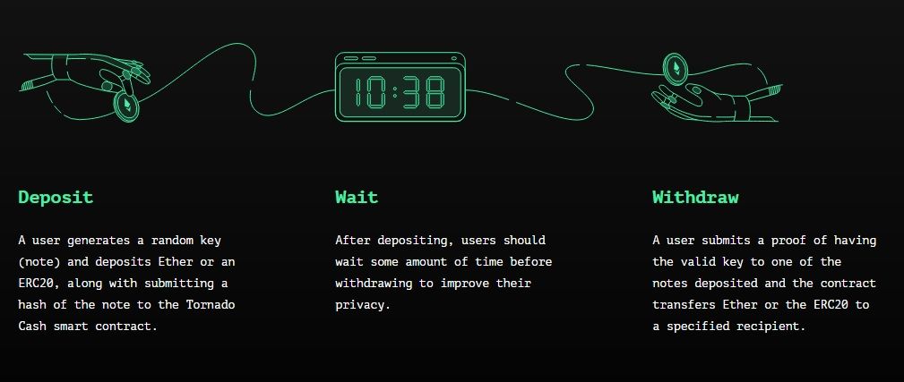 Sponsored토네이도 캐시는 이더리움 상에 있기 때문에 거래시 ERC-20 토큰 스마트 계약 표준을 사용한다. 지금까지는 토큰 입출금을 위한 이더리움의 다른 프로토콜과 큰 차이가 없어 보인다. 하지만 토큰이 토네이도 캐시에서 입금되거나 인출될 때, 그 주소와 새로운 주소 사이에는 아무런 연결이 없다.