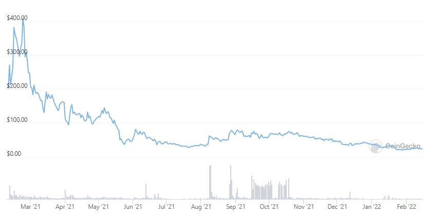 TORN 토큰은 2021년 2월에 에어드랍되어 총 공급량 1000만 개의 5%에 해당하는 50만 개의 TORN 토큰을 차지했다. 에어드랍 직후 TORN은 ATH 가격 436.16달러로 200% 급등했다. 그러나 2021년의 나머지 기간에는 50달러 이하에서 비교적 보합세를 보였고, 현재까지는 24.13달러로 유지하고 있다.