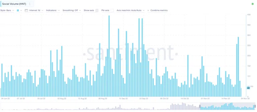 - HNT의 시가총액은 2021년 11월 15일에 53억 8천만 달러로 ATH를 기록했다.