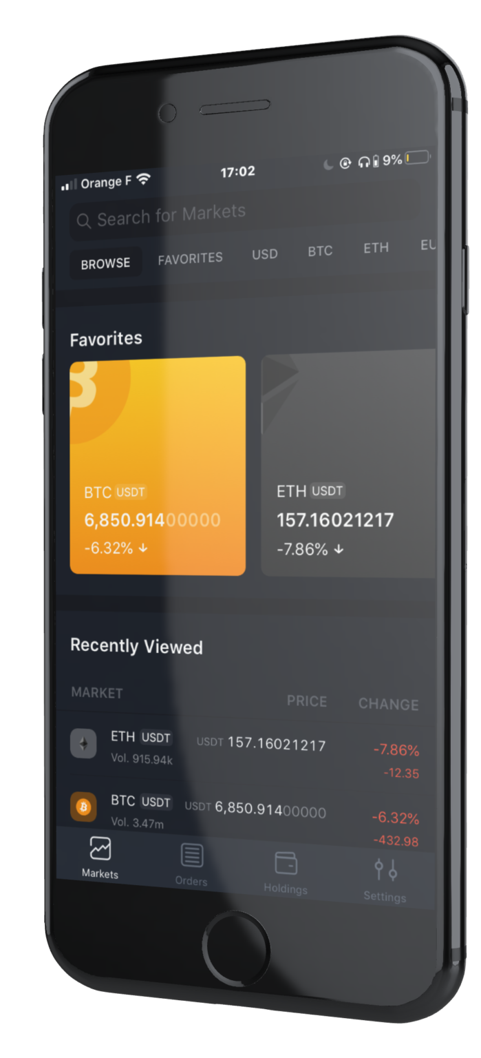 트래이딩뷰(Trading View)의 지원을 받는 거래 차트는 동일한 지표를 제공한다. 전통적인 조건부 거래 외에도 OCO주문(one cancels other), 손절매, 숨겨진 주문(히든 오더, hidden orders) 등을 제공한다.
