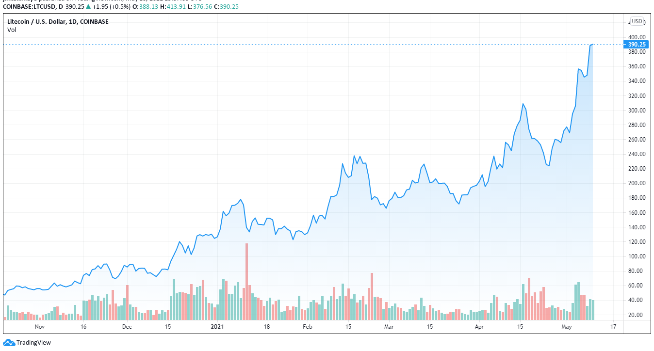 라이트코인은 2021년 초 150달러에서 현재 약 350달러로 오르는 등 최근 큰 성공을 거두고 있다. 라이트코인이 최근 상승세를 보임에도 불구하고, 비트코인 가격과 비교 시 여전히 상승할 가능성이 있다고 평가된다.