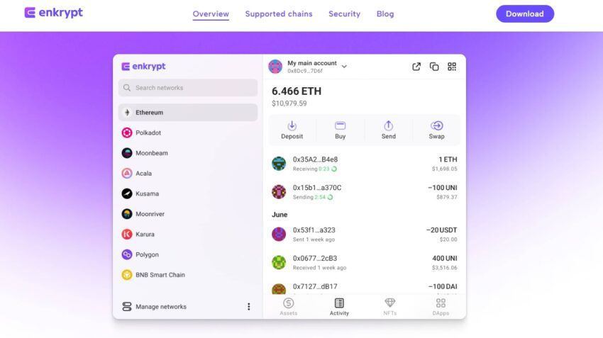 드디어 마이이더 월렛(MEW)에서 나온 오픈 소스의 무료 바닐라 이더리움 지갑, 인크립트(EnKrypt)이다. MEW를 사용해본 사람이라면 인크립트와도 사랑에 빠질 것이다. 이 지갑은 이더리움, 폴카닷 등 여러 체인을 지원하는 MEW의 멀티체인 버전이다.