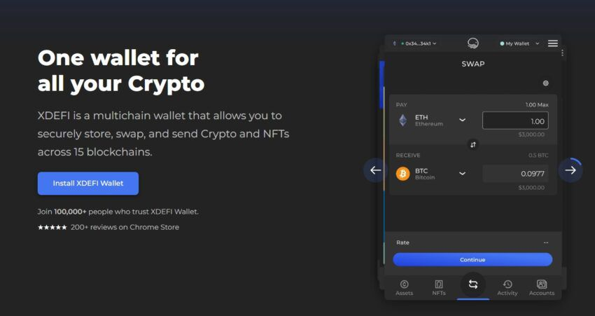 XDEFI는 또한 디지털 아트와 컬렉터블(수집품)용으로 선도적인 NFT 지갑 중 하나이며, 바이낸스보다 최소 25배 많은 10만500개 이상의 암호화폐 자산 간 스왑을 지원한다.