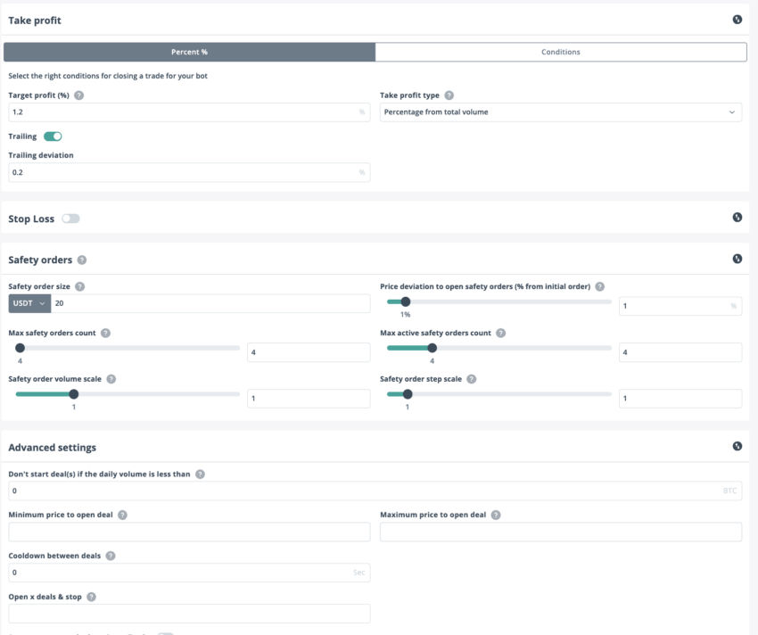 유료 상품 중 하나인 프로 플랜을 구독하면 DCA 봇에 복잡한 조건을 지정해서 수익만 재투자하는 것도 가능합니다. 또한 봇에게 가격 급등 혹은 가격 급락에 따라 이익실현이나 손절매를 하라고 명령할수도 있습니다. 이런 기능들은 대규모 손실을 최소화하는데 상당히 유용하게 사용됩니다.