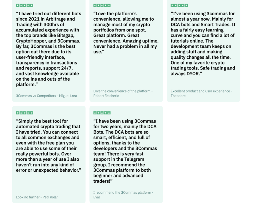 또한 이 리뷰는 3Commas 플랫폼의 성능을 증명하지 않으며 공식적인 보증도 아닙니다. 독자는 투자 결정과 관련하여 직접 실사 및 조사를 수행해야 한다는 점을 명심해야 합니다.