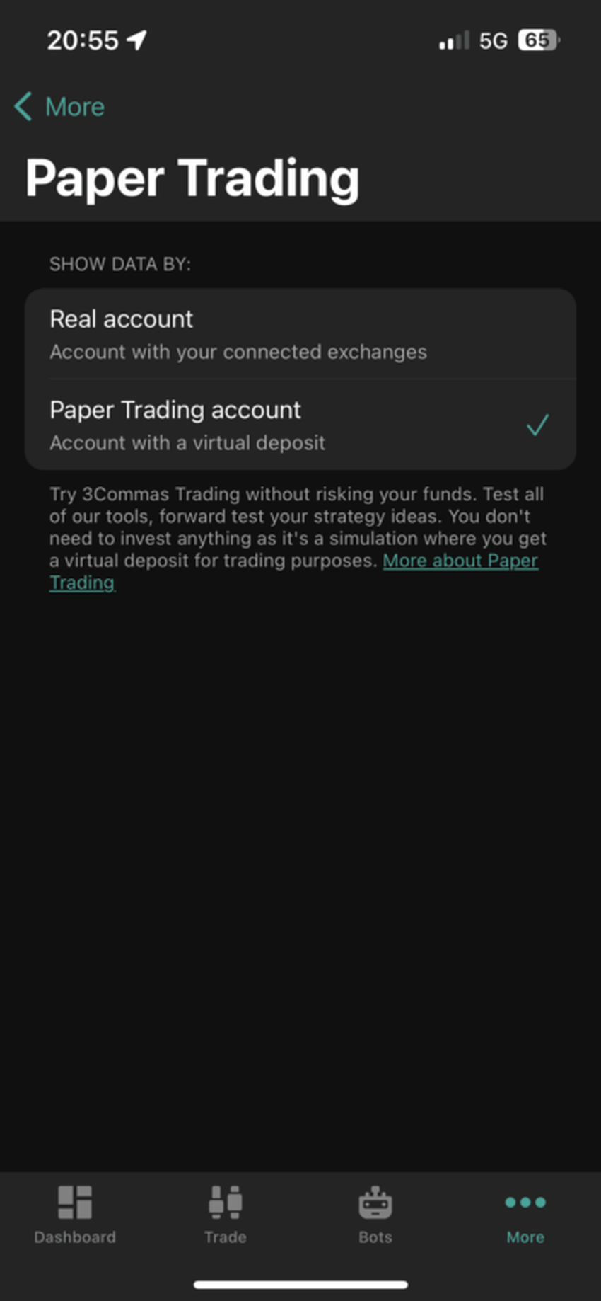 말로는 다 그럴싸해 보이는 게 트레이딩 세계의 특징이기도 하지요. 3Commas에서 제공하는 트레이딩 봇이 정말 유효한 수익을 만들어내는지는 직접 사용해보기 전까지는 모를 일입니다. 이런 우려 때문에 나온 기능이 ‘페이퍼 트레이딩(Paper Trading)’입니다.