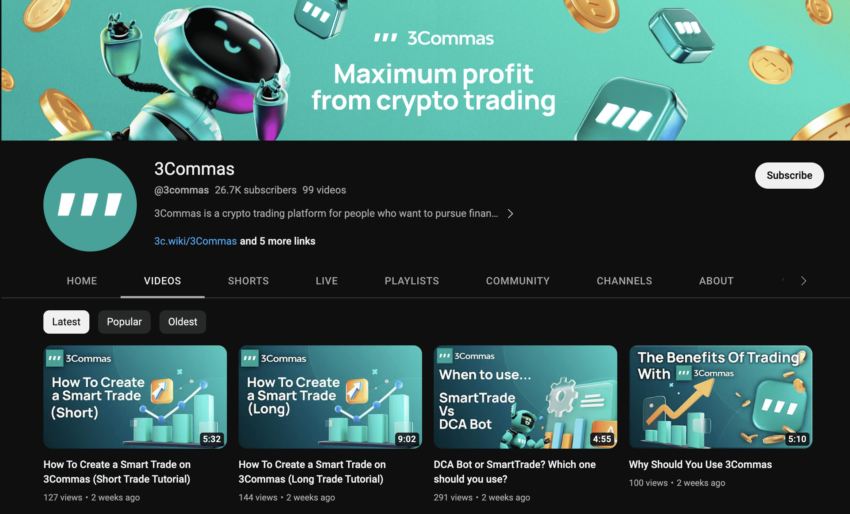 - 아마도 초보 투자자의 경우에는 암호화폐 트레이딩 봇을 설정하고 사용하는 부분이 어려울 수 있습니다. 3Commas 전용 YouTube 채널은 이러한 투자자들의 이해를 상당히 향상시켜주는데 도움이 됩니다.