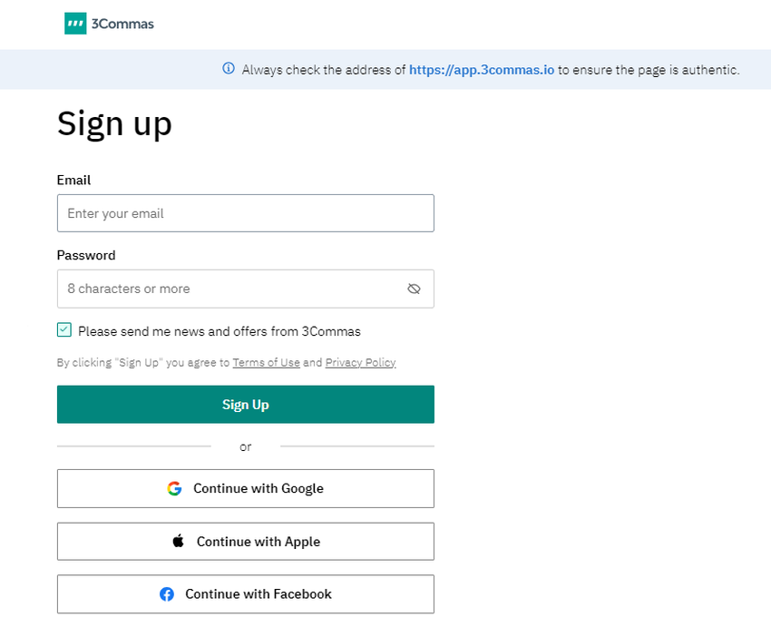 3Commas에 가입하는 방법